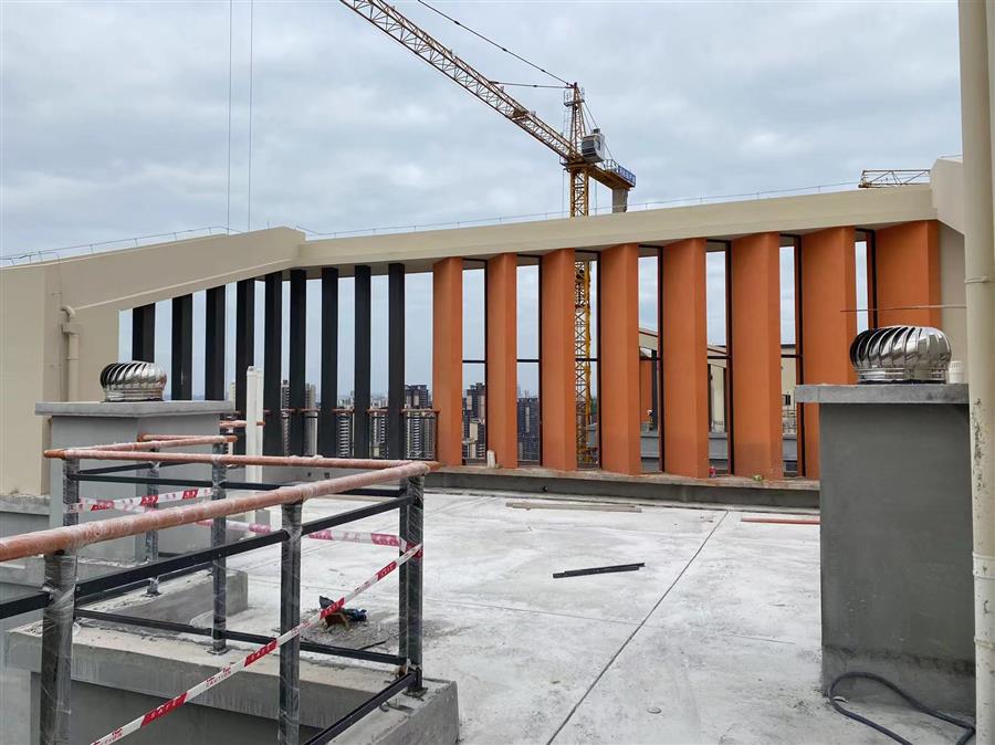 北投時(shí)代(二期)1#、2#、3#、5#、6#樓、北側(cè)大門及地下室工程項(xiàng)目總建筑面積為12.5萬㎡,地下2層,最大建筑高度為97.6m。目前,鋁合金門窗、陽臺(tái)欄桿安裝已完成工程量的80%,砌體工程、室內(nèi)抹灰、頂棚膩?zhàn)印⑽菝鏄?gòu)架涂料已完成,5#、6#樓標(biāo)準(zhǔn)層住戶交付樣板已完成。